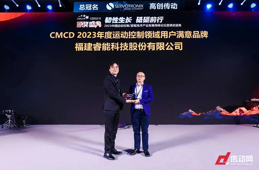 2023年12月在深圳舉辦的“2023年中國運動控制/直驅(qū)技術(shù)產(chǎn)業(yè)發(fā)展高峰論壇暨頒獎盛典”睿能科技憑借23年度良好的市場口碑,榮獲“CMCD 2023年度運動控制領域用戶滿意品牌”獎項,本次獲獎是睿能科技在運動控制領域客戶對我們產(chǎn)品質(zhì)量的高度認可,也是對睿能品牌的肯定。睿能將堅持不斷創(chuàng)新,為客戶提供更多選擇,持續(xù)推動整個工業(yè)自動化行業(yè)的發(fā)展。