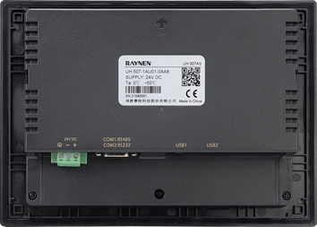 | UH 507AE | 7"TFT | 800×480 | USB2.0×1 Type A(USB1) 支持U盤更新固件、組態(tài)和存儲數據 | USB2.0×1 Type B(USB2) 支持程序上傳下載 | COM1:RS485 COM2:RS232 | 10M/100 M自適應 | 230×166×39mm | |